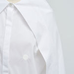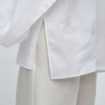 yoriオリジナル貝釦を使用しています。両サイド裾のスリットあきは軽快な印象の裾に仕上げるなど細部に拘りました。是非お手に取って頂きたい1枚です。