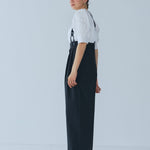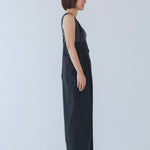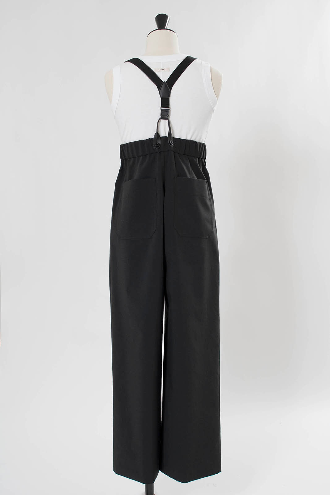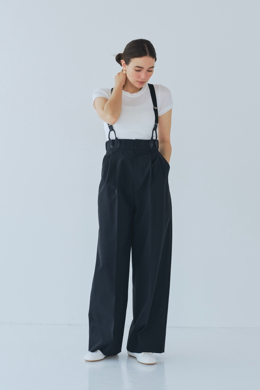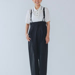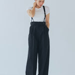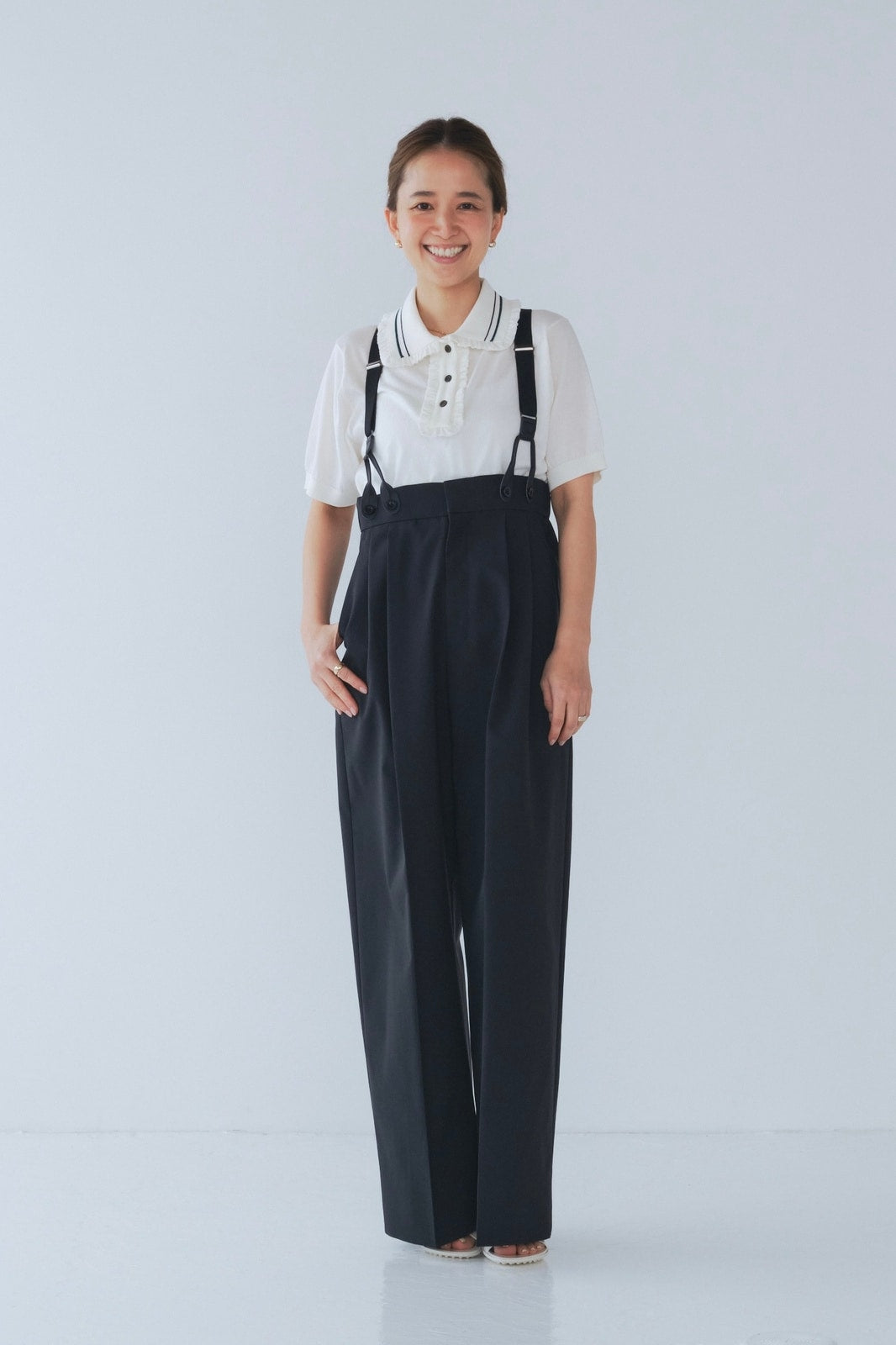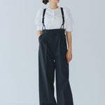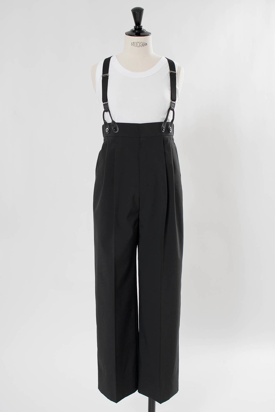 密度の高いタイプライター素材を使用したサロペット。縦糸、緯糸に軽量な糸を織り上げたストレッチ素材で、しなやかさと快適さが感じられます。UVカット機能と吸水速乾機能が備わっており、夏の暑い日でもさっぱりと快適にお過ごしいただけます。ふくらみのある風合いとクリアな見え方、ドライなタッチが特徴で、シワになりにくくデイリーに使いやすい点も嬉しいポイントです。身体のラインを拾わず、ストレートシルエットでリラックス感が漂います。太めのウエストベルトとストラップで、ハイウエストに見せるデザインが、カジュアルなサロペットに女性らしい雰囲気をプラスしています。肩紐は調整可能で、お好みの丈感にぴったり合わせられるので、どんな体型にもフィットします。フロントに施したタックや、落ち感のあるワイドシルエットが絶妙なバランスで、程よい抜け感を演出します。後ろには高い位置に大きめのパッチポケットがありスタイルを良く見せてくれる効果も!合わせるインナーやアクセサリー次第で、さまざまな表情を楽しむことができ、スタイリングの幅がぐっと広がるアイテムです。