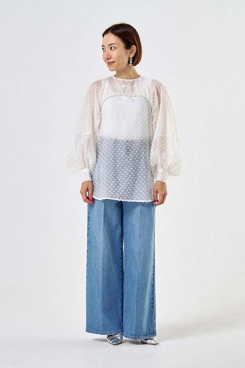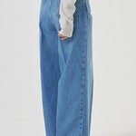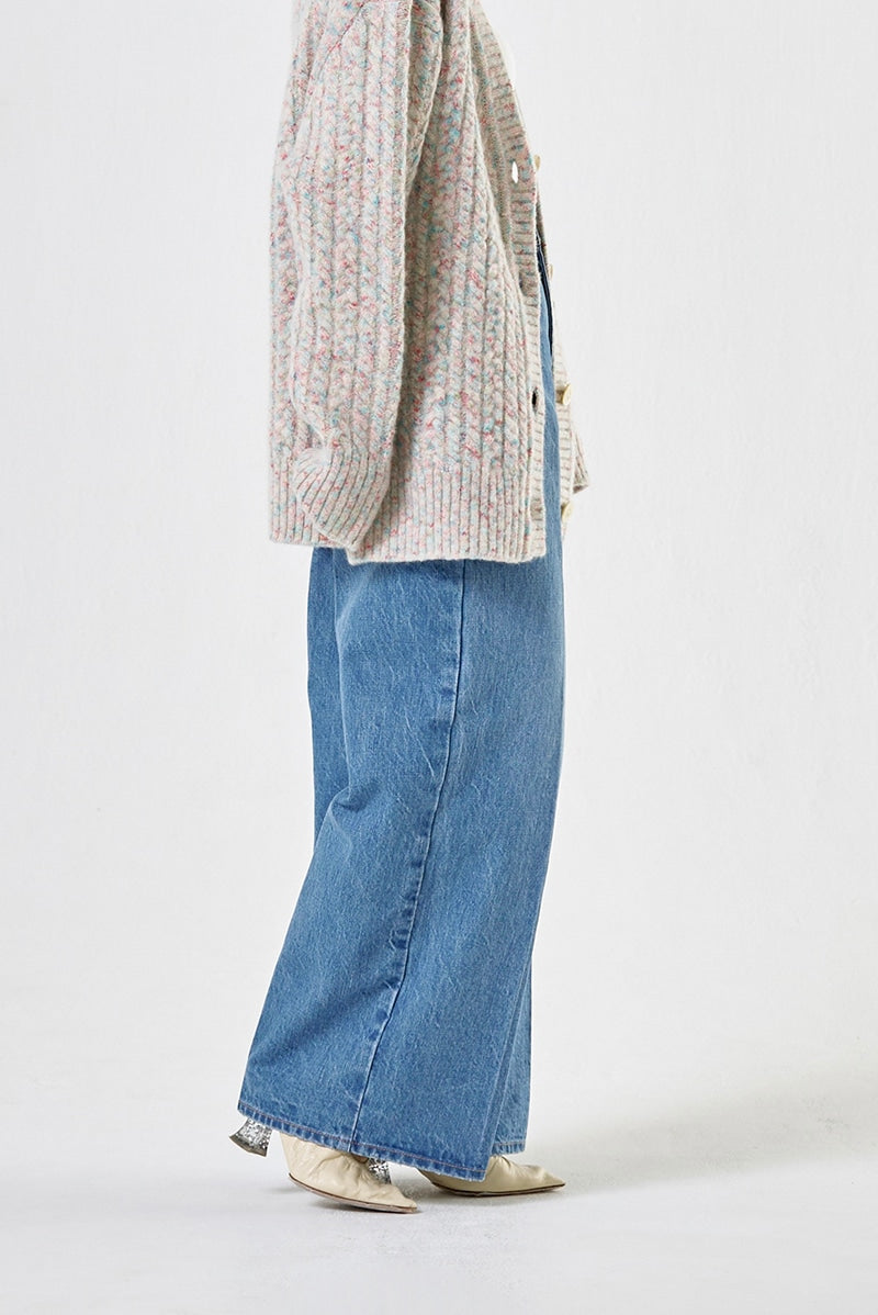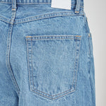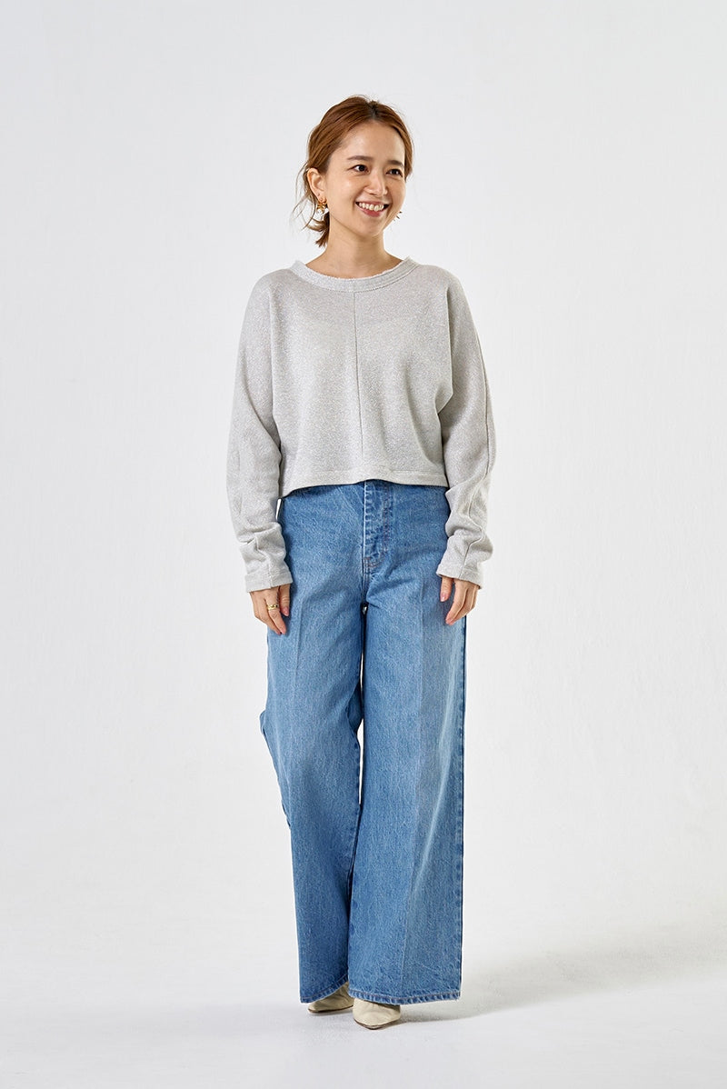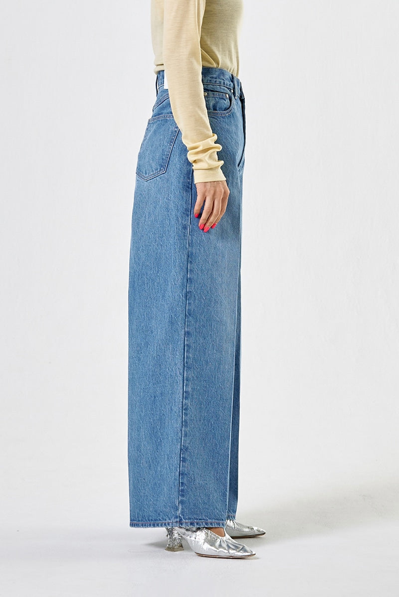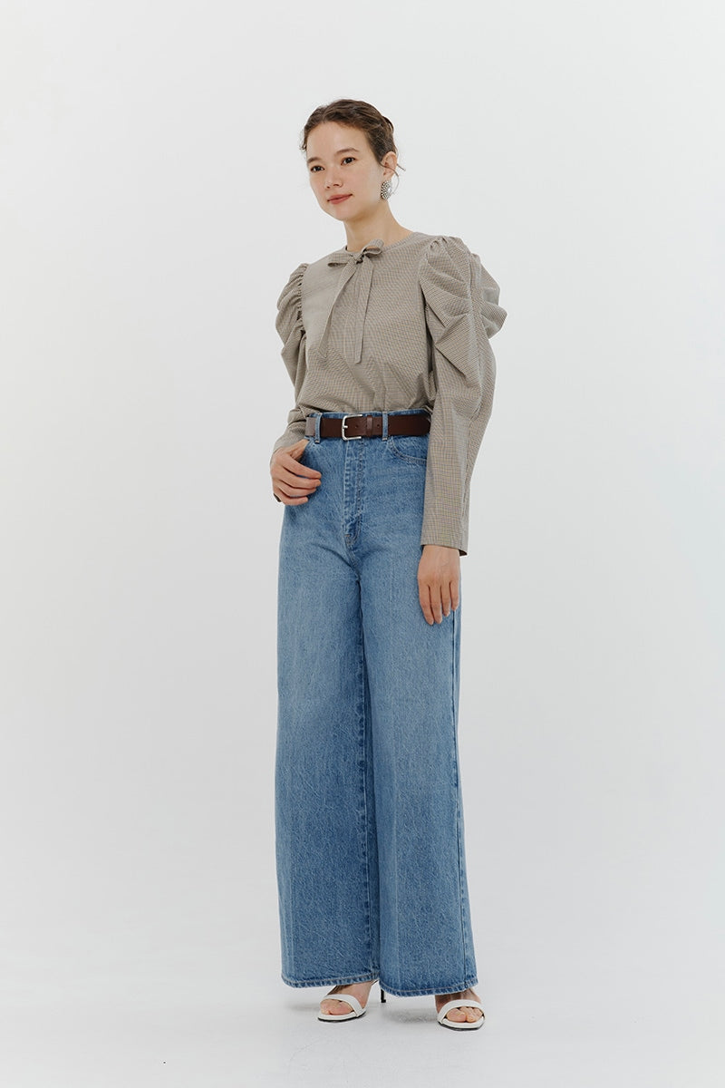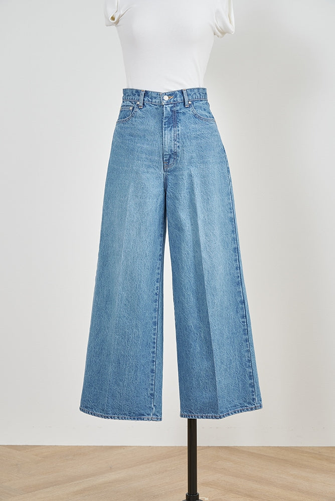 yori初めての5ポケットデニム登場です。カジュアルになりすぎずLadylikeなデニムパンツに仕上げました。ウエスト周りはすっきりとさせたハイライズ、腰まわりをややタイトにすることですっきりとしたバランスに。膝や裾は大きく取ったワイドシルエットです。腰位置が高く見え、センタープレスのコスリ加工により脚長効果抜群の1本。裾にダメージ加工を施し最後に風合いを柔らかくするのに柔軟WASHしています。デニム職人が1点1点手作業で加工を仕上げました。バックウエストのホワイト革パッチにはyoriロゴを型押しし、存在感のあるバックスタイルに。一つお持ちいただくと、テイストやシーズンを問わず活躍してくれるアイテムです。Tシャツとのカジュアルなコーディネートはもちろん、過去yoriブラウスなどと合わせたきれいめな着こなしも新鮮に見せてくれるのでおすすめです。