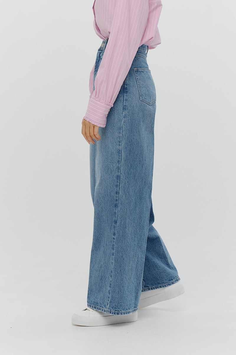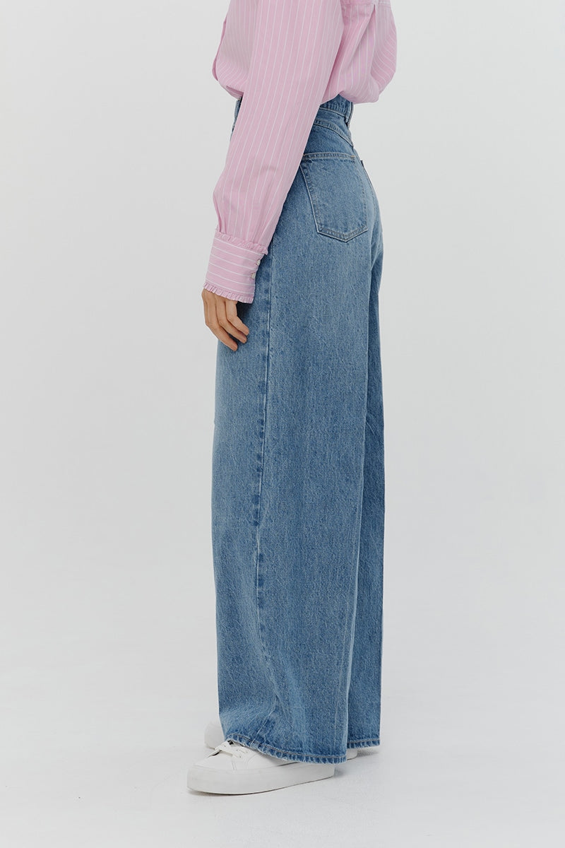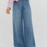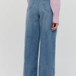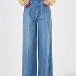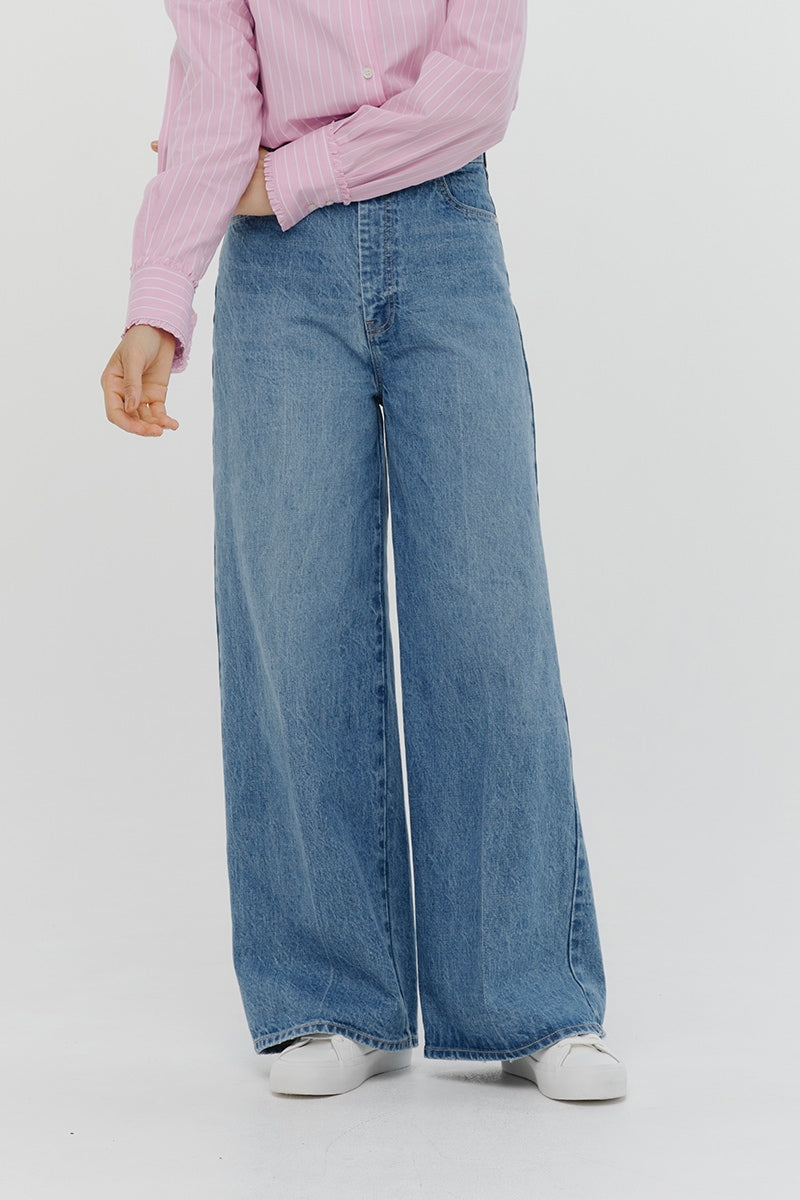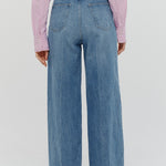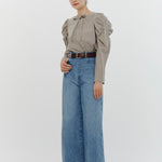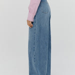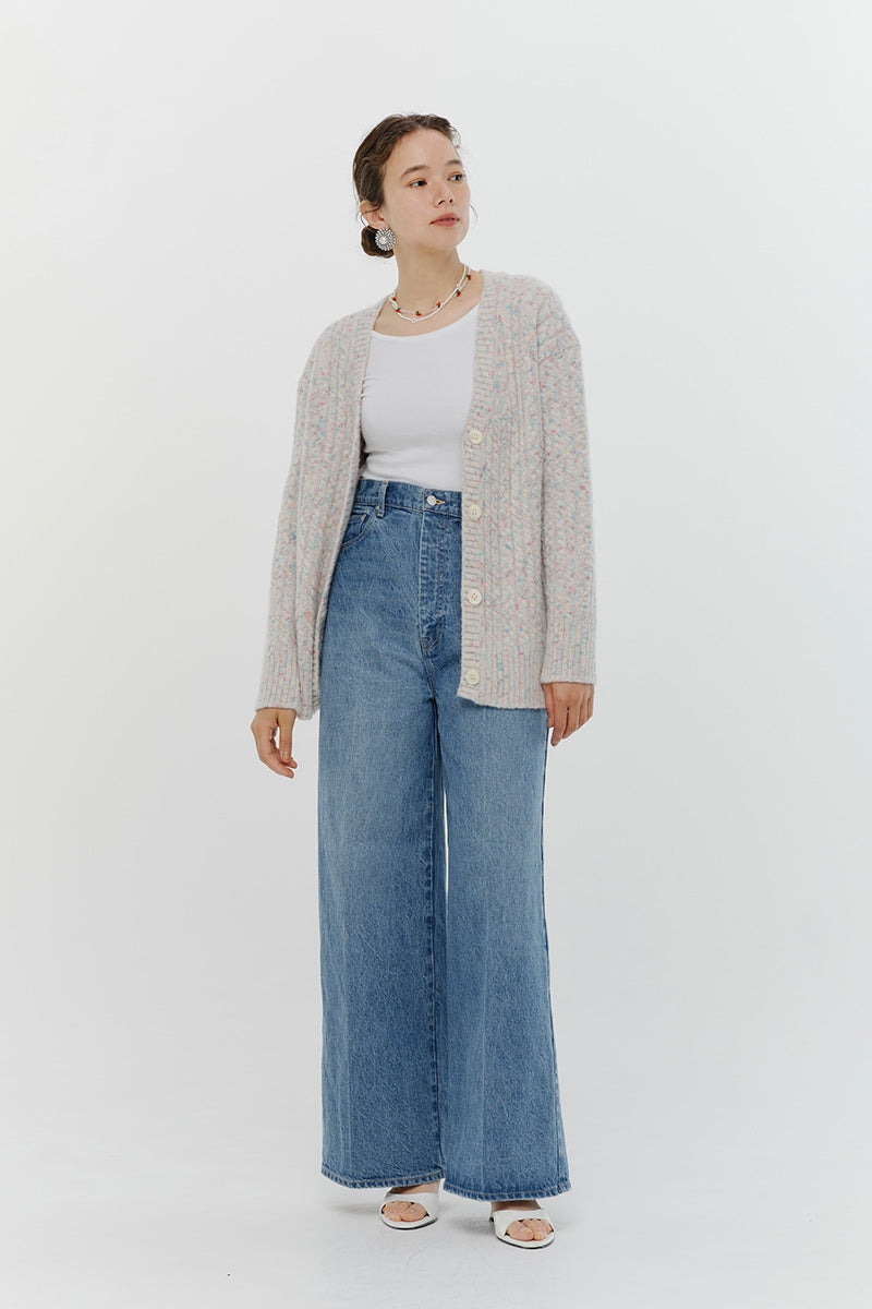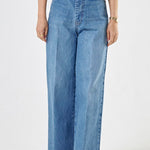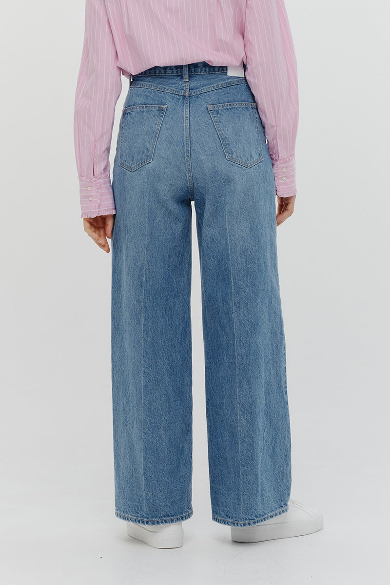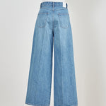 yori初めての5ポケットデニム登場です。カジュアルになりすぎずLadylikeなデニムパンツに仕上げました。ウエスト周りはすっきりとさせたハイライズ、腰まわりをややタイトにすることですっきりとしたバランスに。膝や裾は大きく取ったワイドシルエットです。腰位置が高く見え、センタープレスのコスリ加工により脚長効果抜群の1本。裾にダメージ加工を施し最後に風合いを柔らかくするのに柔軟WASHしています。デニム職人が1点1点手作業で加工を仕上げました。バックウエストのホワイト革パッチにはyoriロゴを型押しし、存在感のあるバックスタイルに。一つお持ちいただくと、テイストやシーズンを問わず活躍してくれるアイテムです。Tシャツとのカジュアルなコーディネートはもちろん、過去yoriブラウスなどと合わせたきれいめな着こなしも新鮮に見せてくれるのでおすすめです。