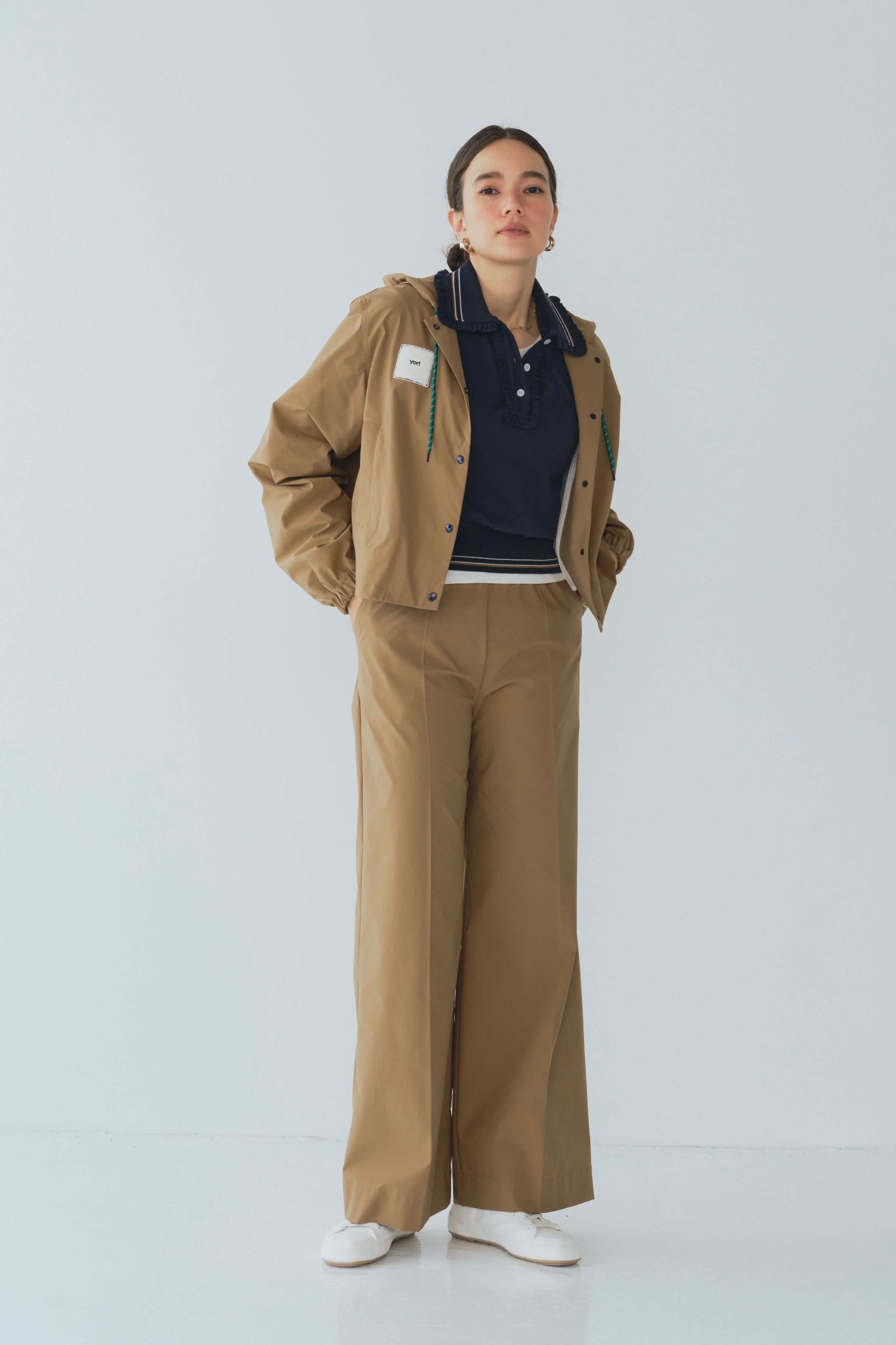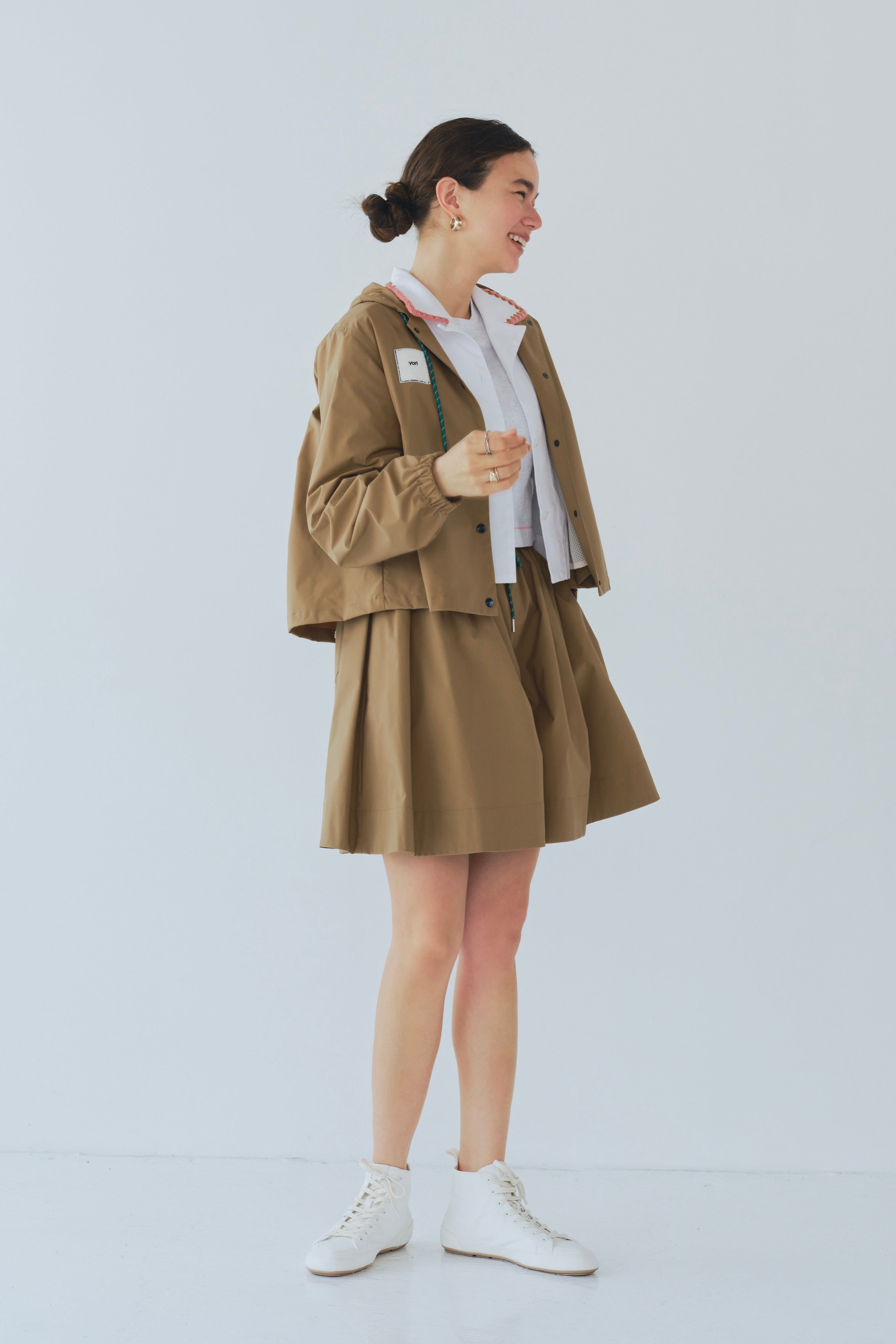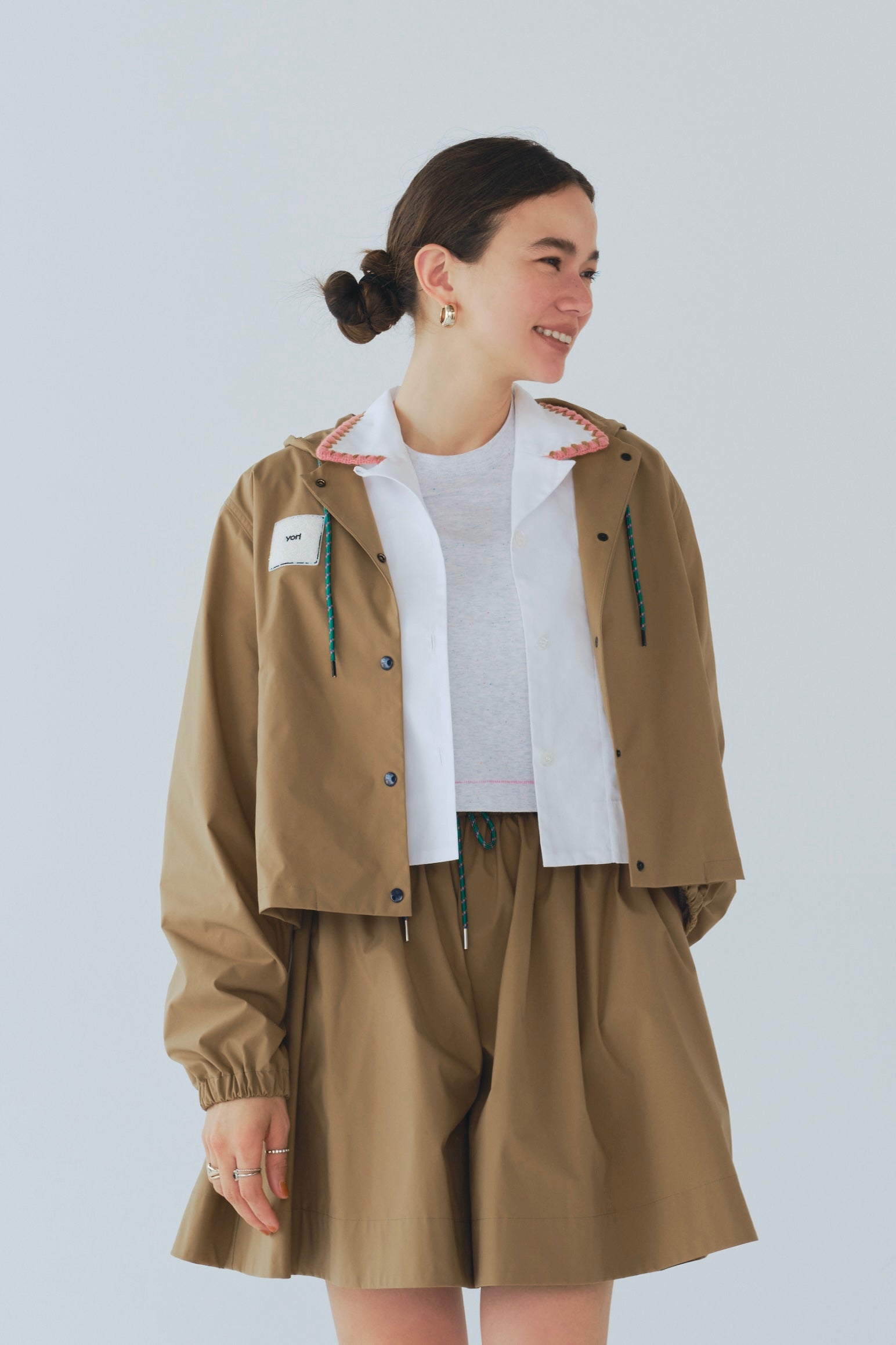 フェスにぴったりな可愛いパーカーが登場しました!端境期の寒暖差が激しい時期にぴったりな万能羽織りで、軽やかな着心地が魅力です。UVカット、接触冷感、撥水、シワになりにくいなど、多機能素材を使用しており、フェスやアウトドアシーン、運動会でも大活躍。フードのPOPカラーのヒモやバックのたっぷりギャザーとフロントドットボタンもデザインのポイント。裏地にはさらさらなタッチのメッシュ素材を配することで汗のべたつきを軽減させています。アウトドア向けの素材感を活かしつつ、日常のファッションにもぴったりなデザインとカラーに仕上げています。リラックス感のあるシルエットは、どんなアイテムとも相性がよく、スタイリングの幅を広げてくれます。胸元のもふもふしたyoriオリジナルパッチが、可愛らしさをグッと引き立て、フェスやお出かけにぴったりのアクセントに。さらに、シワになりにくくバックに丸めて簡単に持ち運べるので、雨の日や春先の少し肌寒い日にも便利です。