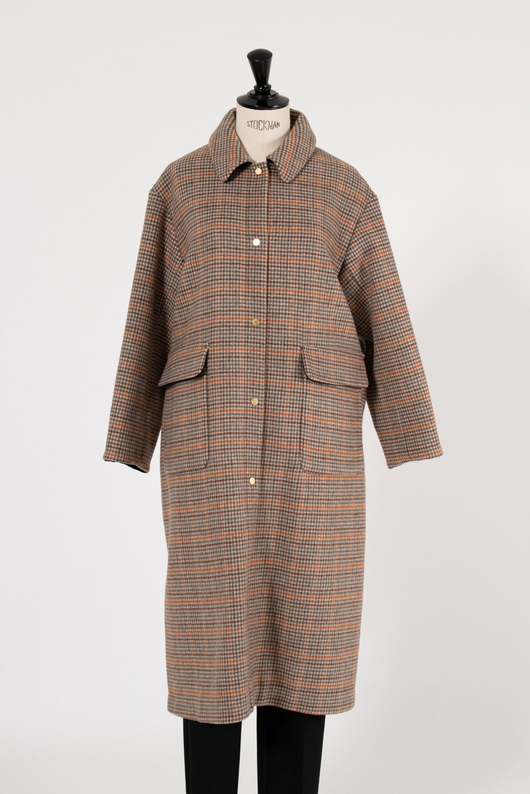 ウールチェックロングコート