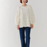 フクレ刺繍ギャザーブラウス