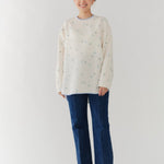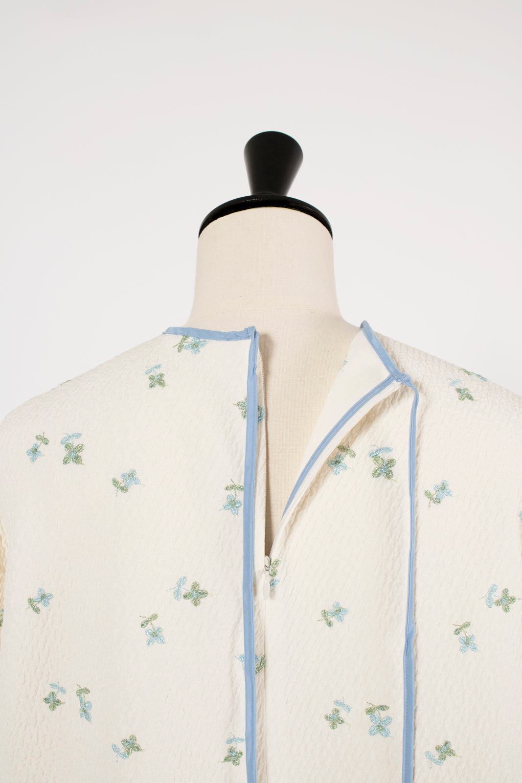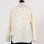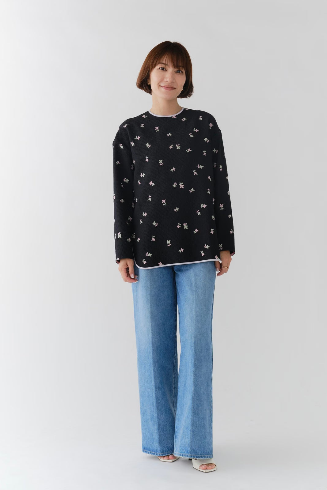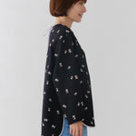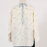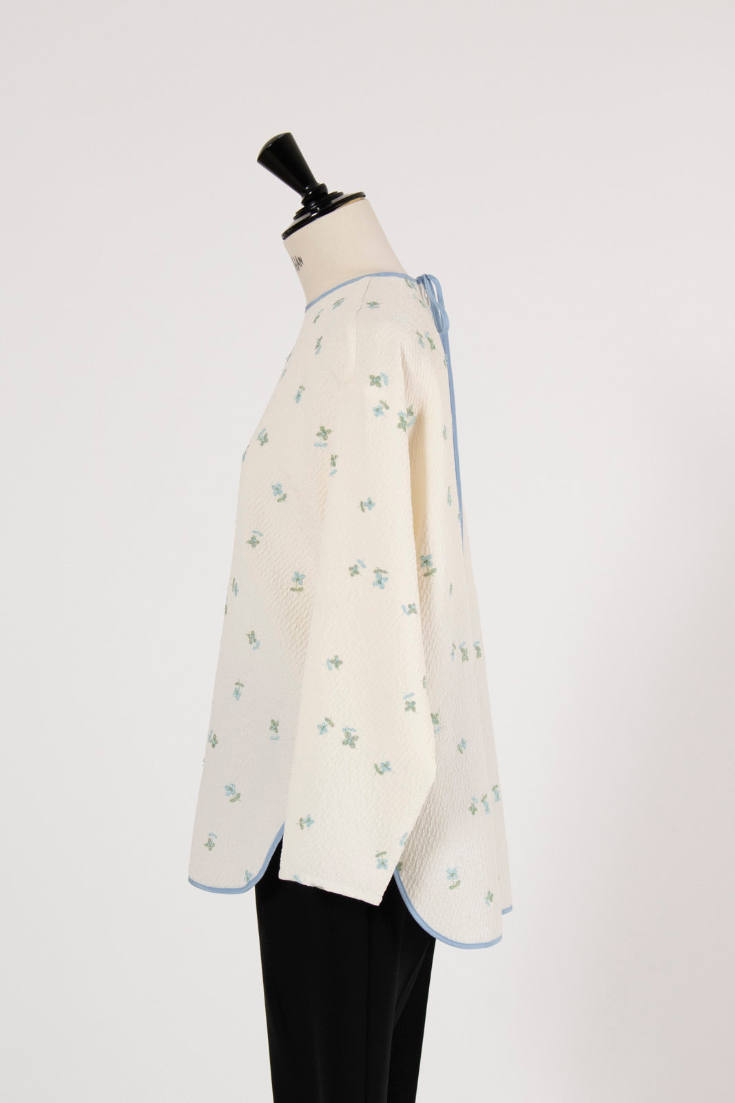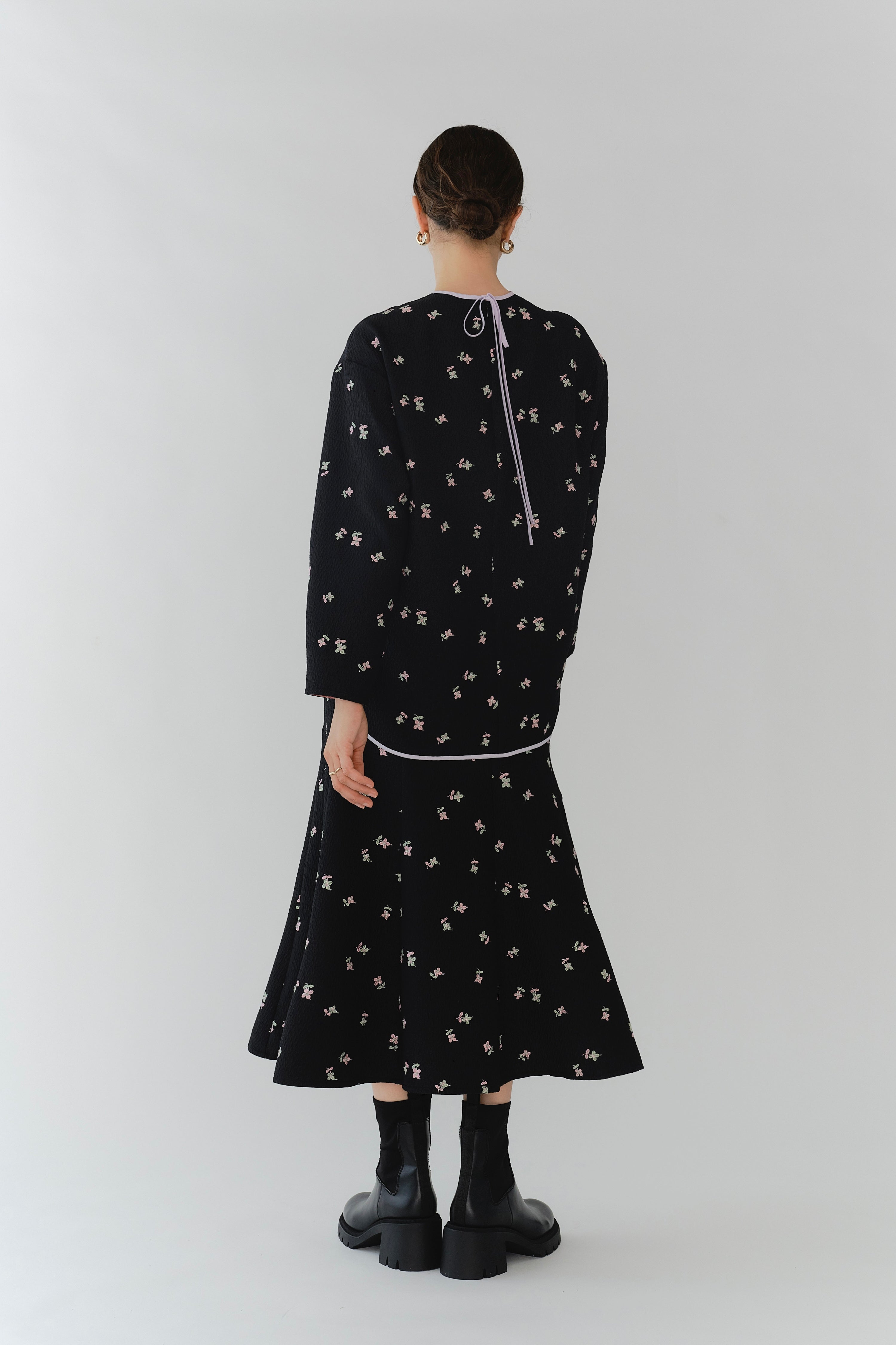 まるで煌めく花々が舞い踊るような刺繍が可愛い<yori>オリジナルのフクレジャガード生地を使用。立体感のある織りと繊細で艶やかなお花の刺繍が他にはない特別感あふれる一着に。プレーンなシルエットの中に、裾・襟ぐり・後ろリボンに刺繍と合わせた配色の生地を施し、さりげない大人の可憐さを演出。ゆったりとしたオーバーなサイズ感とゆるやかにラウンドされた前後差ある裾で飽きのこないデザインです。シワになりにくく、お手入れ楽ちんなのも嬉しいポイント。袖をたくし上げて手首を見せるスタイリングも抜け感がでてバランスが取りやすくおすすめです。デイリーからお出かけまで幅広いシーンでお召しいただけます。