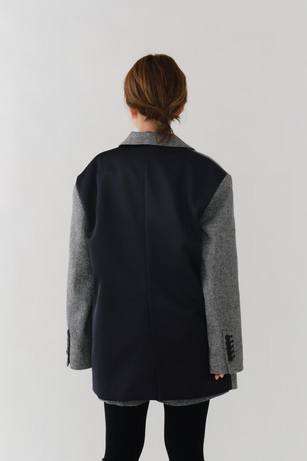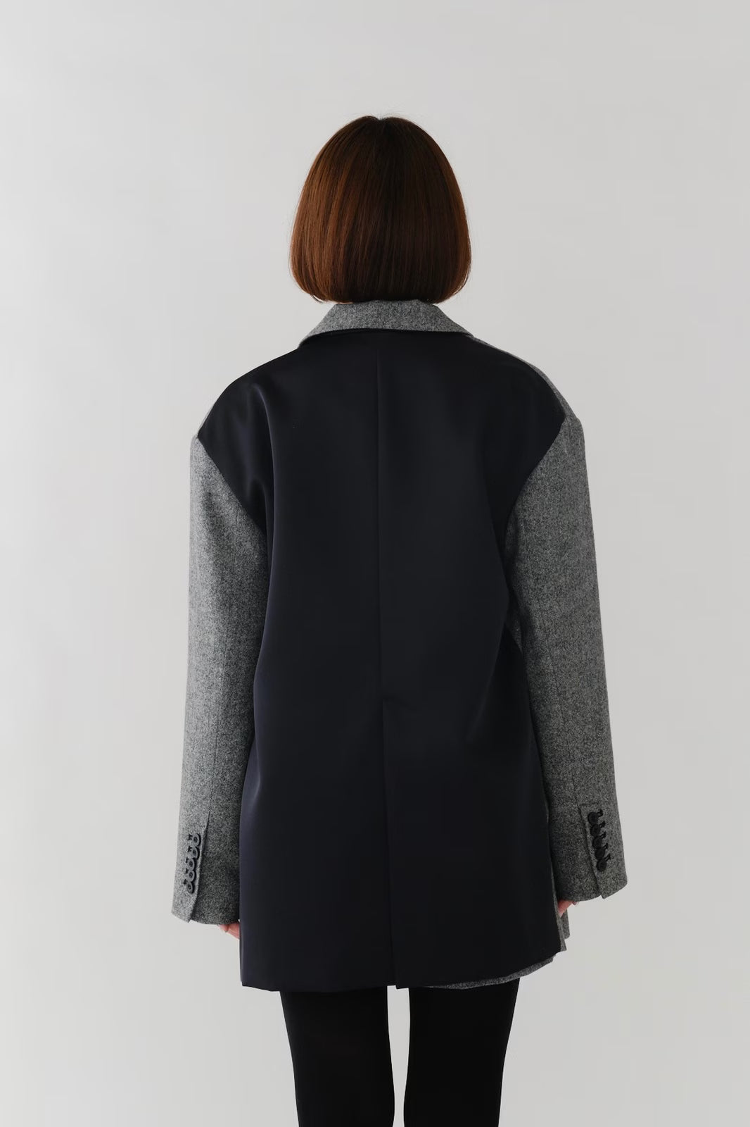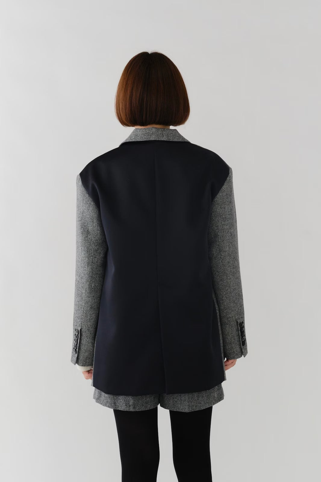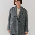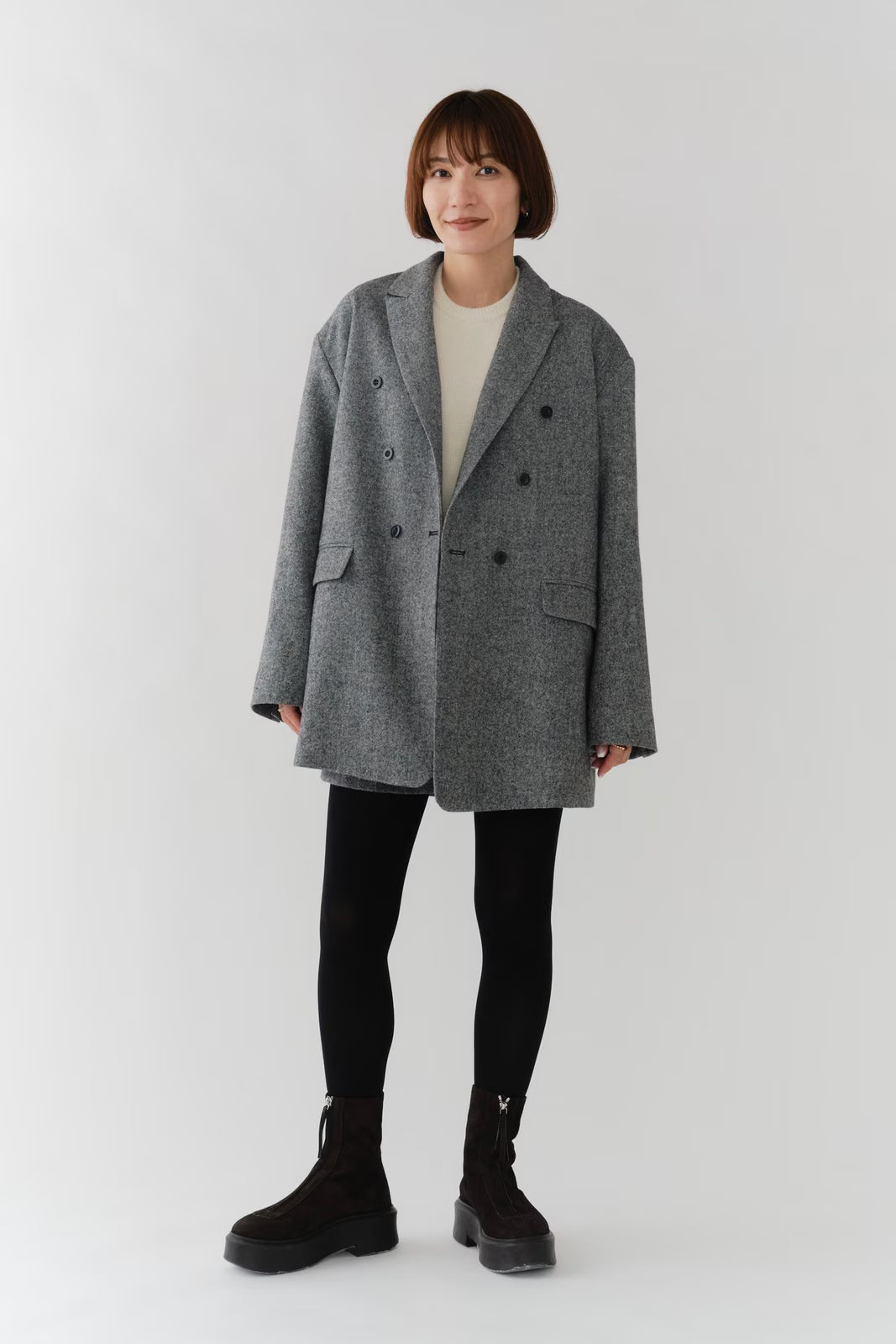 国産のリサイクルポリエステルを選定し、全ての工程を日本国内で行っているリサイクル紡毛素材を使用。クラシックな佇まいに、現代的なエッセンスを取り入れたエコウールツイードジャケット。上質なメンズツイードを思わせる風合いのある生地は、ほどよい厚みと柔らかさを兼ね備えています。フロントには深めのVラインとダブルボタン、ピークドラペルを採用し、凛とした印象に。クラシカルなデザインながらも、女性らしく軽やかに羽織れるビックシルエットに仕上げました。袖口には繊細なボタンを贅沢にあしらい、袖裏にはストライプ柄の裏地を使用。ロールアップ時にも美しさを保ちます。さらに、バックスタイルにはサテン生地を施したベンツを配し、動きのある上品な表情を演出。yoriらしいネームタグモチーフもさりげないアクセントに。タイムレスなデザインと確かな素材感が、日常をワンランクアップさせてくれる一着です。