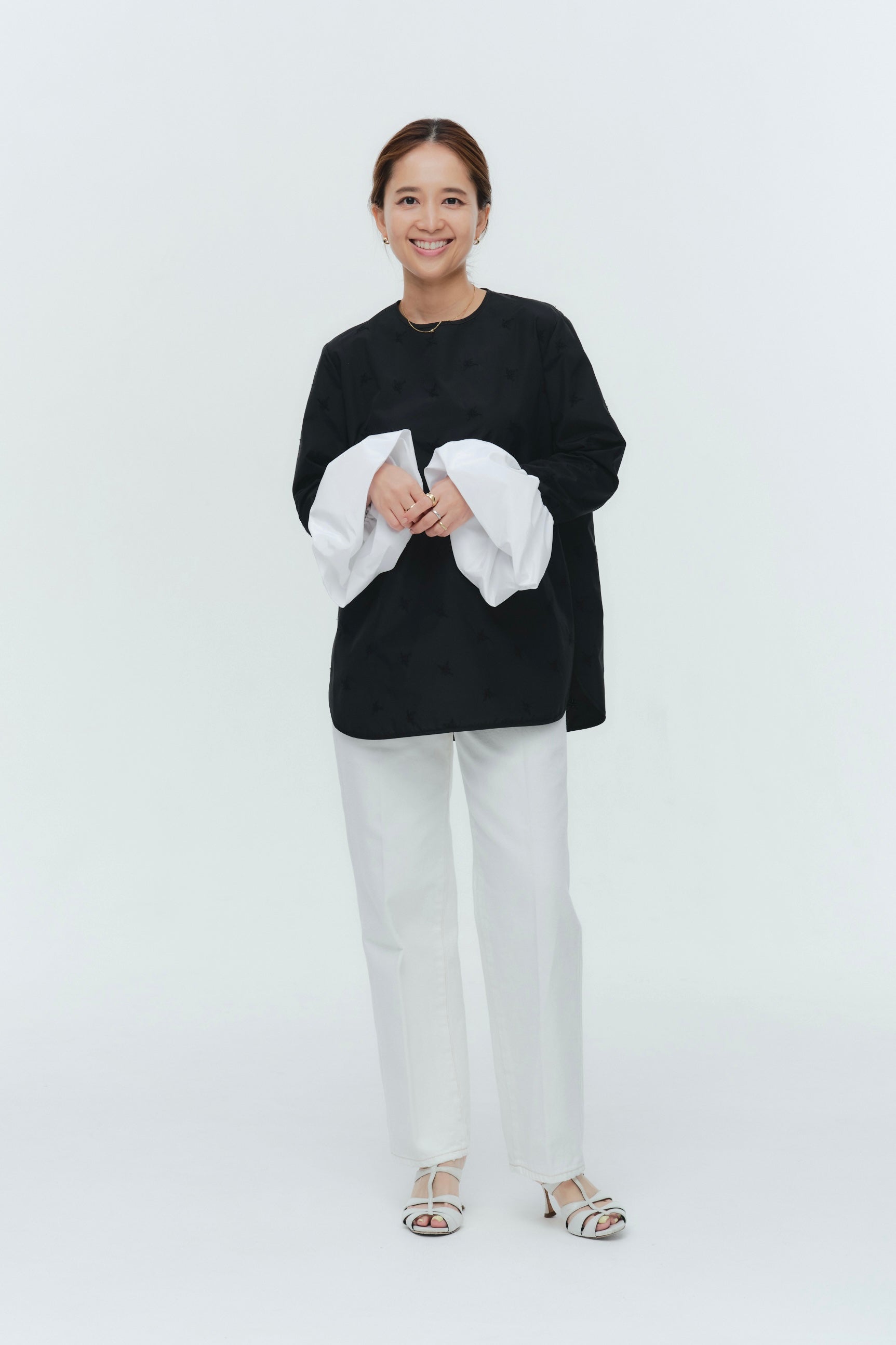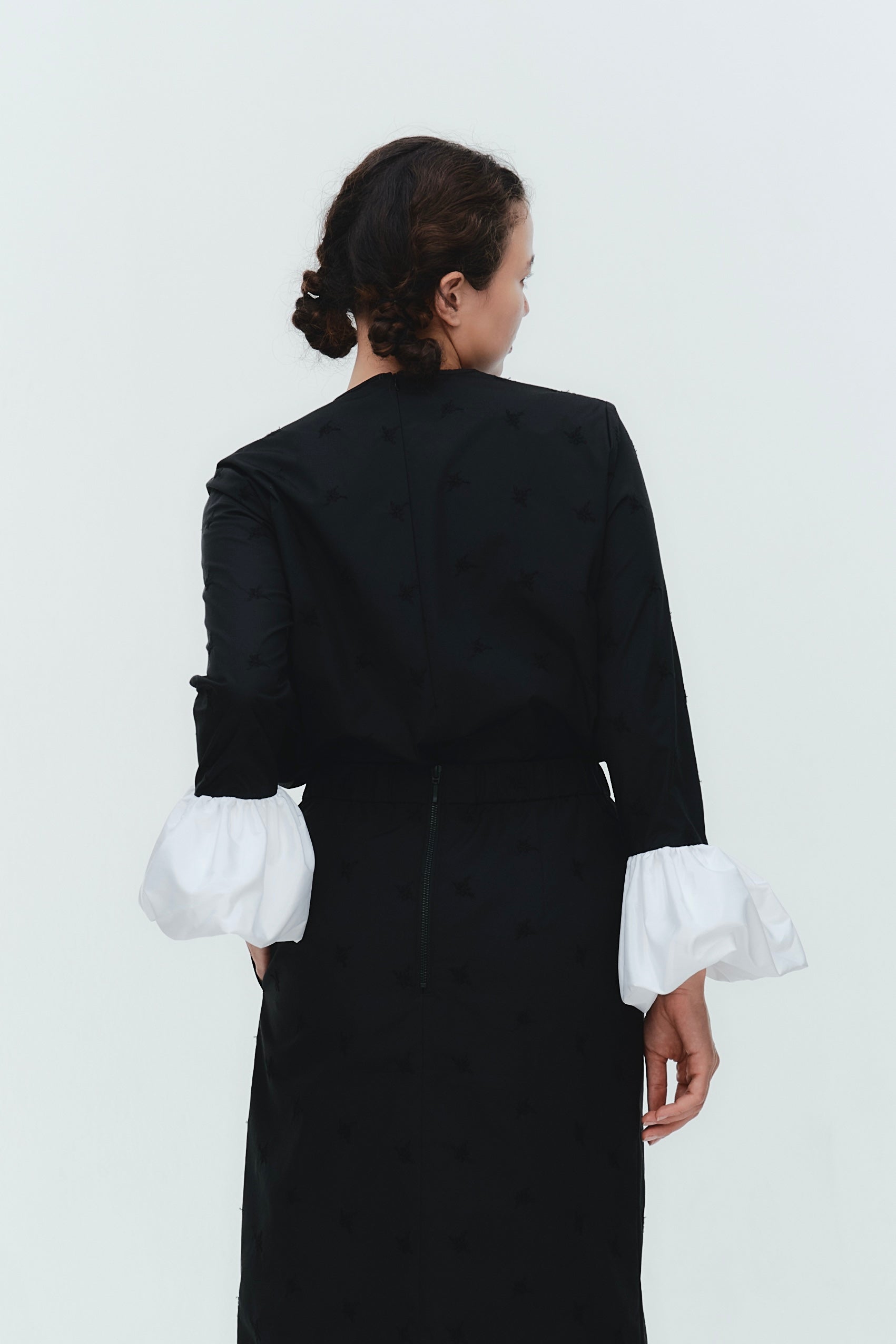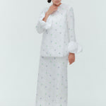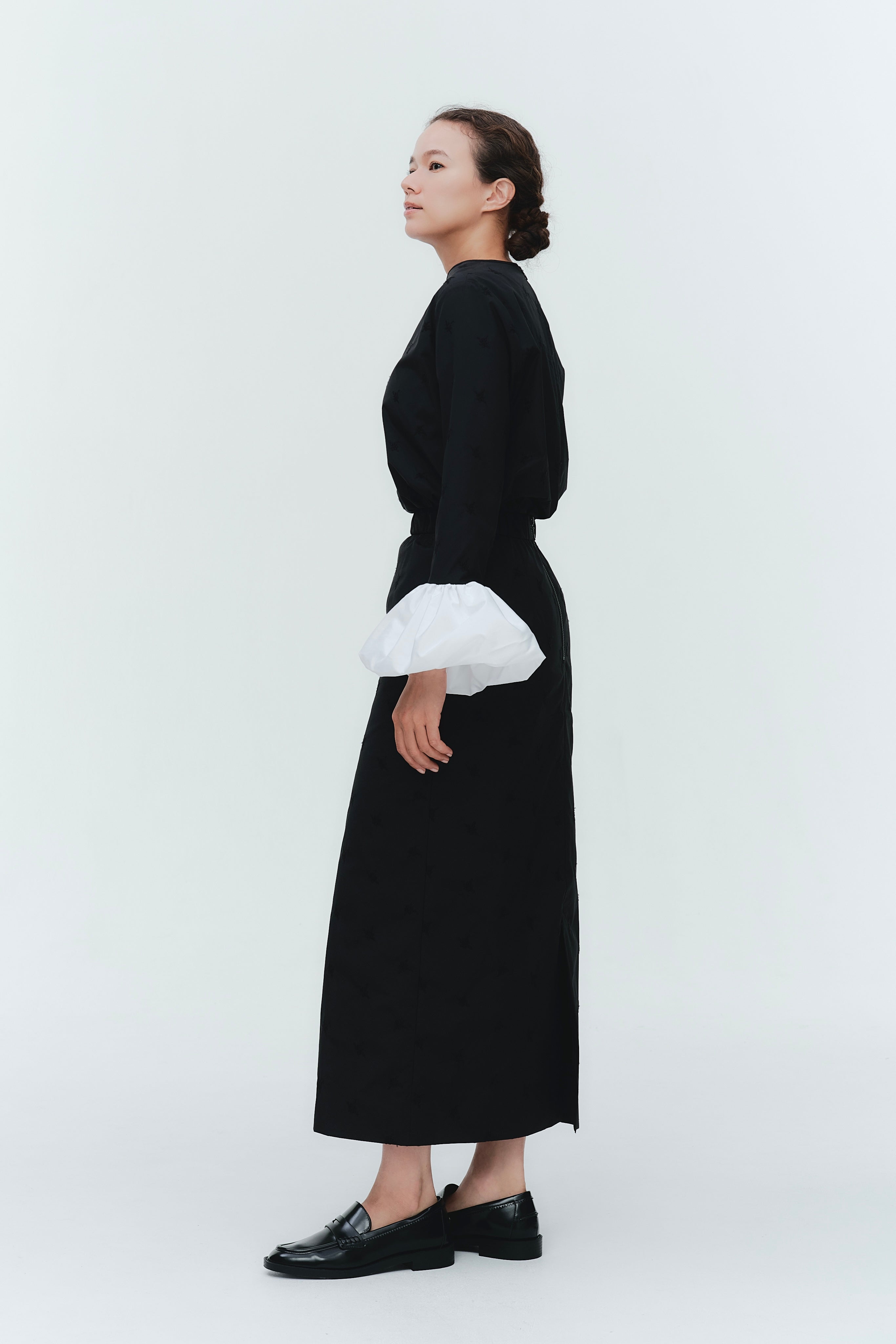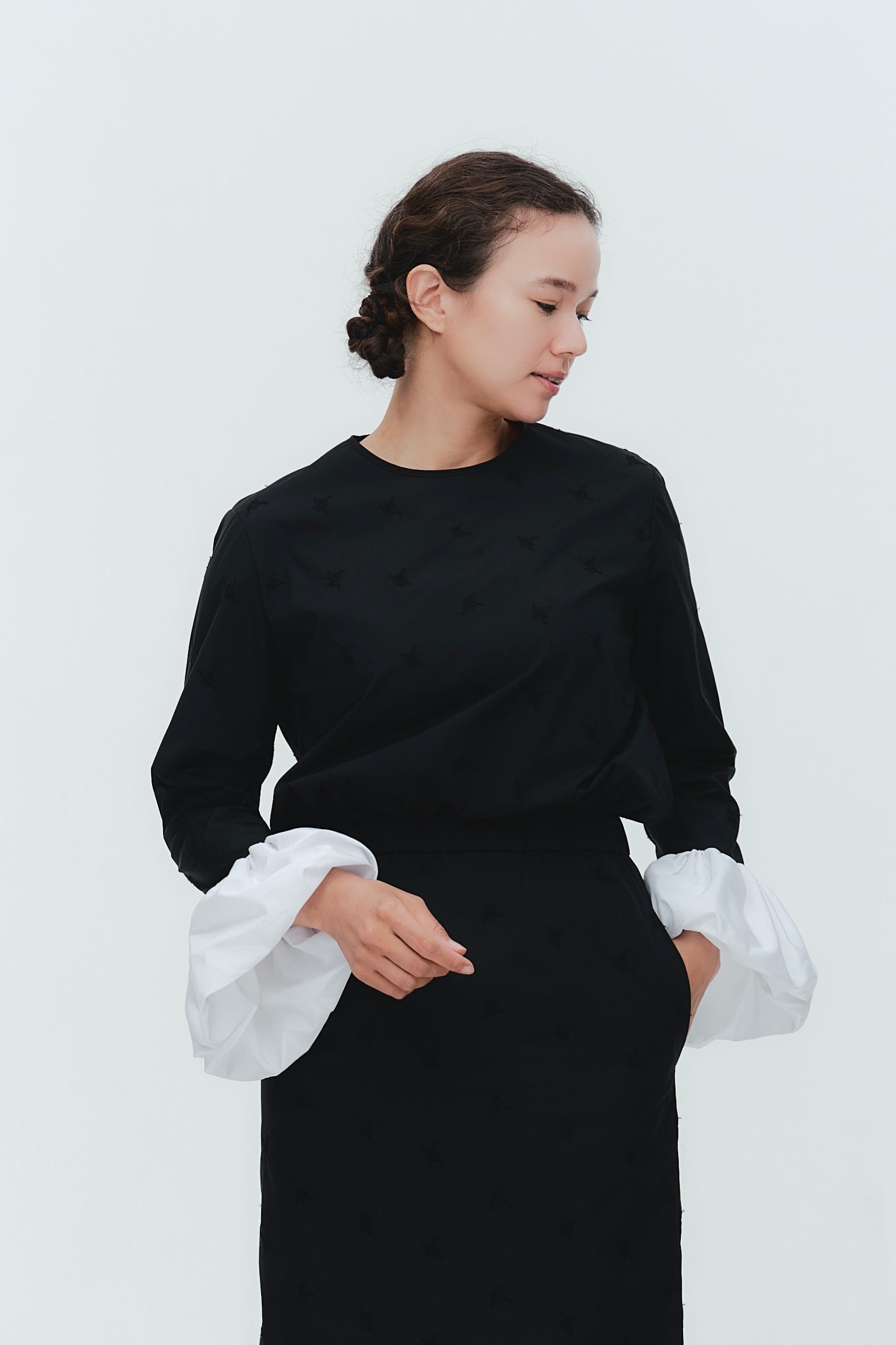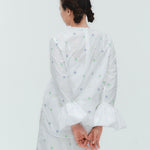 愛らしい花々が咲き誇る<yori>オリジナル生地を使用。繊細で立体的なお花の刺繍が他にはない特別感あふれる一着に。上品な光沢ある生地でより刺繍の可愛らしさを際立たせます。まるでホイップのようなふんわりとしたバルーンカフスで今までにはない新しいシルエットに。ゆるやかにラウンドされた裾のラインでイン/アウトどちらの着こなしも様になります。シワになりにくく、自宅でお手入れしやすいのも嬉しいポイント。ニットと合わせてバルーンカフスをポイントにしたレイヤードスタイルも良し。同生地のロングスカートと合わせておよばれスタイルにもぴったり。デイリーからお出かけまで幅広いシーンでお召しいただけます。