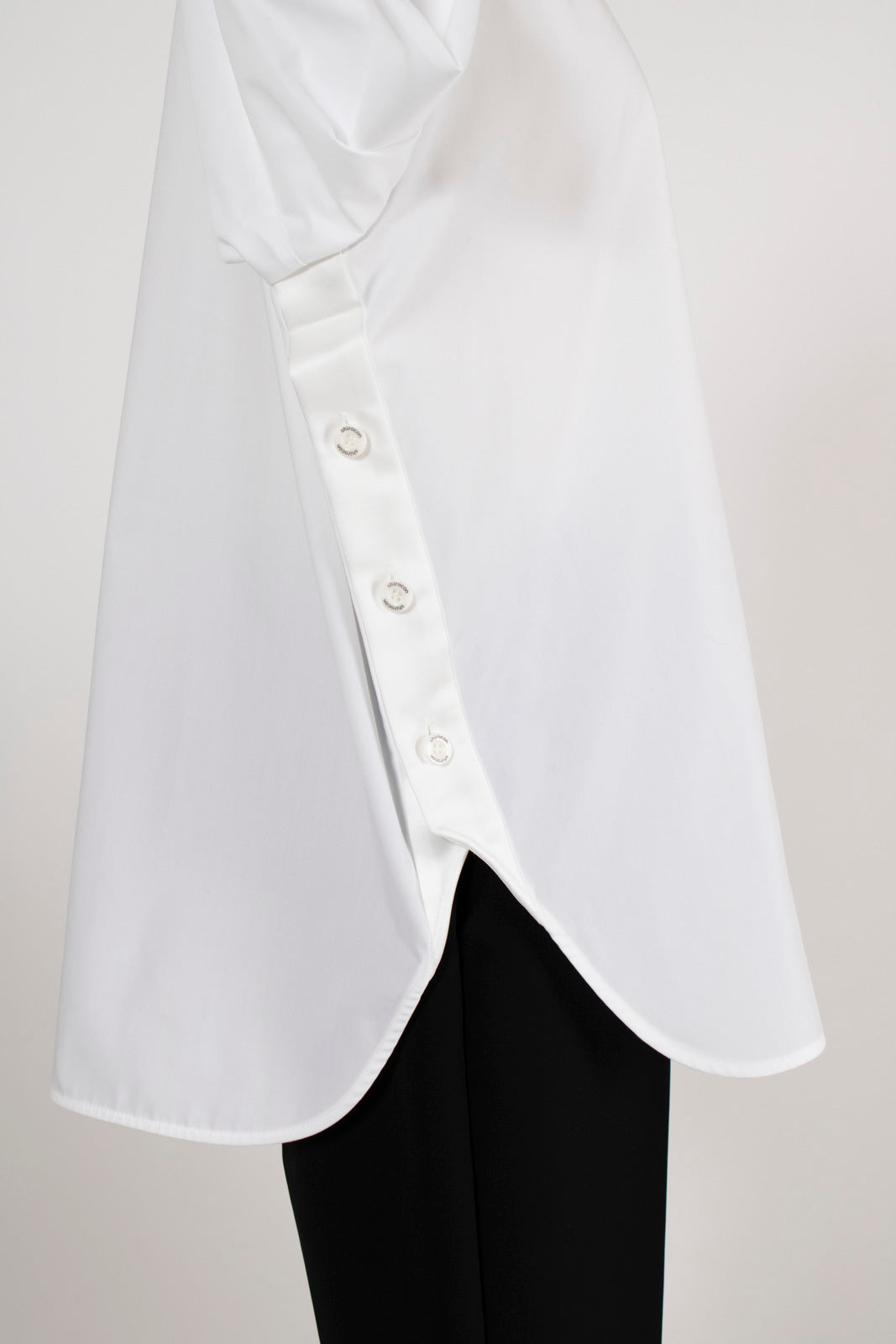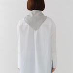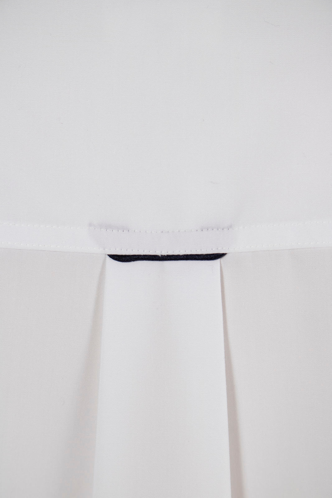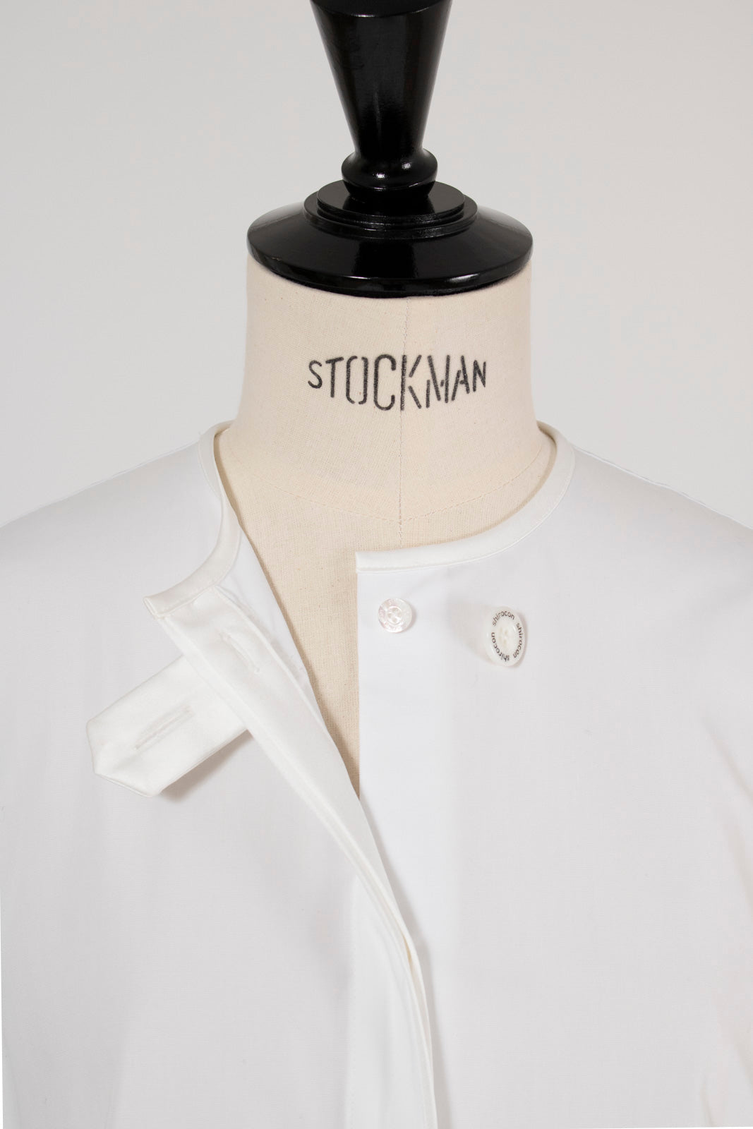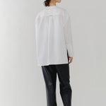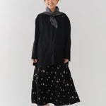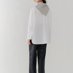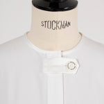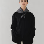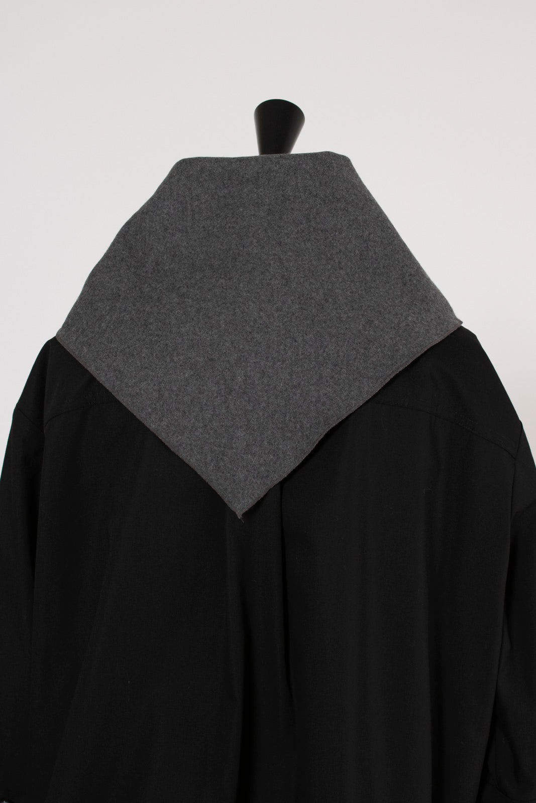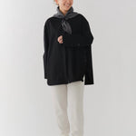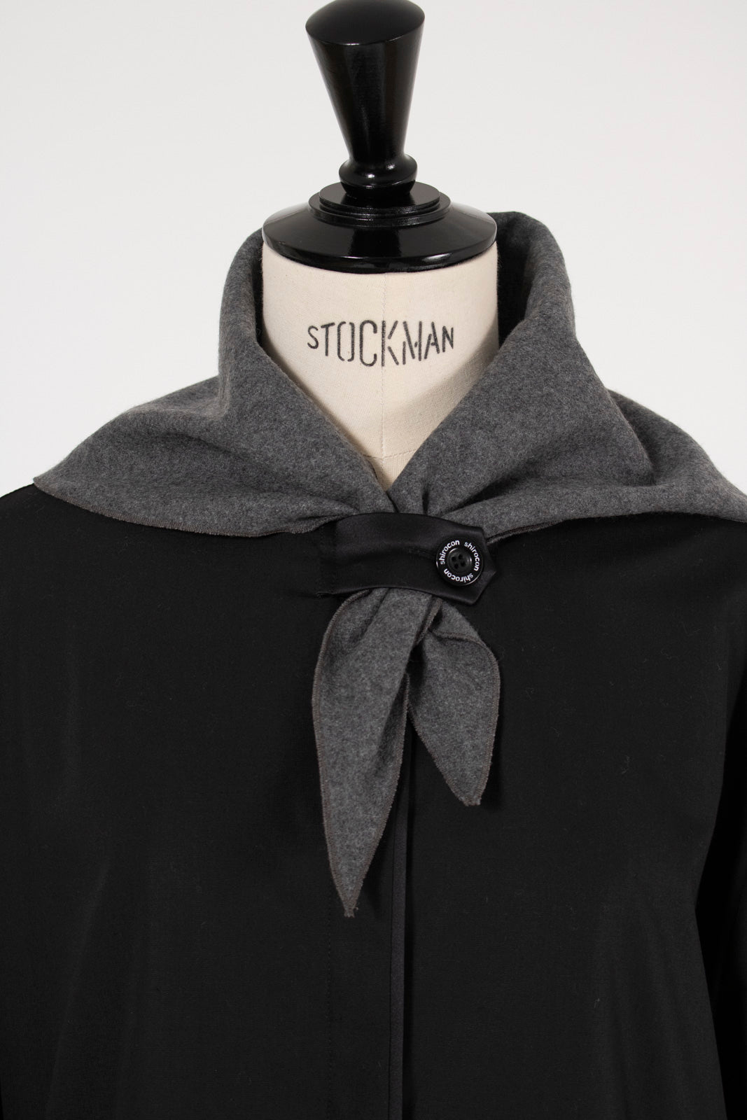 上品な比翼仕立てで、洗練されたシルエットが美しい一枚。取り外し可能なウールスカーフが、セーラー風な雰囲気を引き立てます。大きめのタブでスカーフを挟み込むデザインは、シンプルながらもさりげない個性を与え、スカーフを外せば、また違った魅力を楽しめる万能アイテム。ブラウス生地はシワになりにくいイージーケア素材です。両サイドにはさりげないボタン開きがあり、動きやすさとアクセントを加えています。袖口には、shiroconオリジナルの色違いネームボタンをあしらい、微細な遊び心を感じさせます。前立て裏と広幅カフスは、内側にサテン生地をあしらい、ちらりと見えるサテンの光沢感が洗練された印象を作ります。後ろにはボックスタックに配色ラインを加え、後ろ姿にも華やかさと上品さをプラスしました。シンプルながらも、細部に至るまでこだわりが詰まった、shiroconならではの比翼ブラウス。大人の女性にぴったりの一着です。